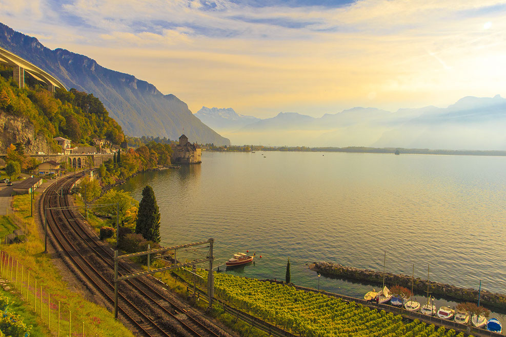 When the terraced vineyards start to turn colors, it's hard to find a more picturesque location anywhere. Standing in the terraces, the earth seems to drop out from under your feet, revealing vast valleys or lakes below and surrounded by towering, snow-capped peaks. The terraced vineyards of Lavaux and Martigny are not to be missed. The tour also includes a stop at one of the most beautiful castles along Lac Leman - Chillon Castle..